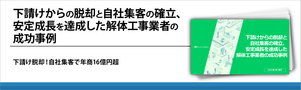 そんな業界で(株)クリーンアイランド様は直接依頼を獲得することで粗利率を上げて多くの解体工事を受注することに成功しています。