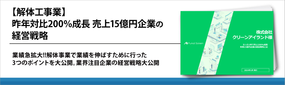 元請け解体工事ビジネスで毎年売上を2割伸ばし続ける株式会社クリーンアイランド様の事例をご紹介し、業績を伸ばすポイントを深掘りしていきます。