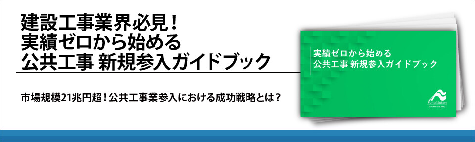 公共工事への新規参入を検討されている企業様、そして、公共工事を通じてさらなる成長を目指したい企業様必見のレポートです。ぜひダウンロードして、貴社のビジネスにご活用ください。
