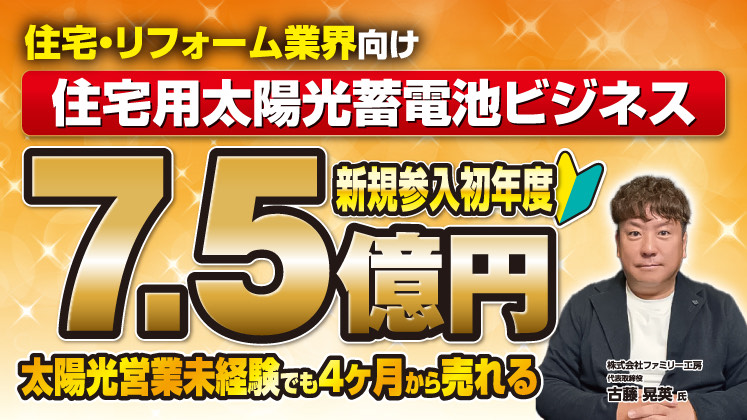 「太陽光事業の専任者ゼロ・専門ショールーム不要」の省コスト体制で立ち上げ、わずか3ヶ月目から月商2,000万円ペースに乗せ、初年度7.5億円を達成。